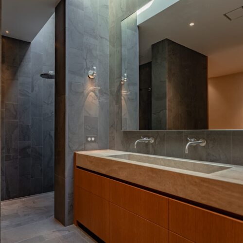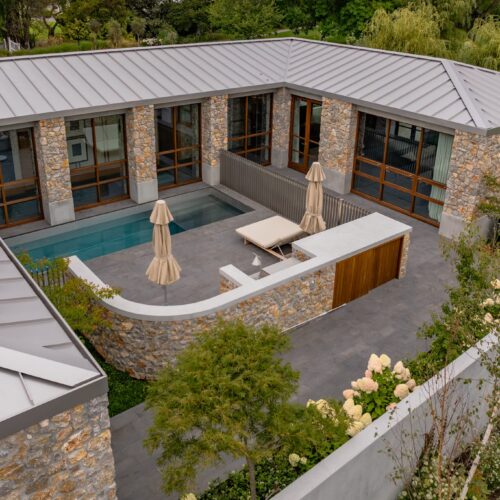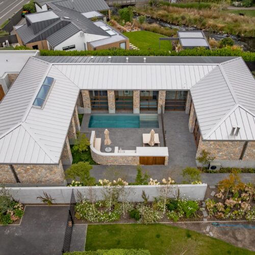 Crafted by H+M BuildersĀ and meticulously designed by architect Phil Redmond, this new home build showcases a refined balance of imported and locally sourced natural products, executed with an exceptional level of detail throughout. A striking stainless steel roof crowns the residence, complementing the rich natural texture of Timaru Bluestone features and carefully applied stone cladding. Warmth and cohesion are achieved with American White Oak used extensively throughout, paired beautifully with cedar timber window joinery.